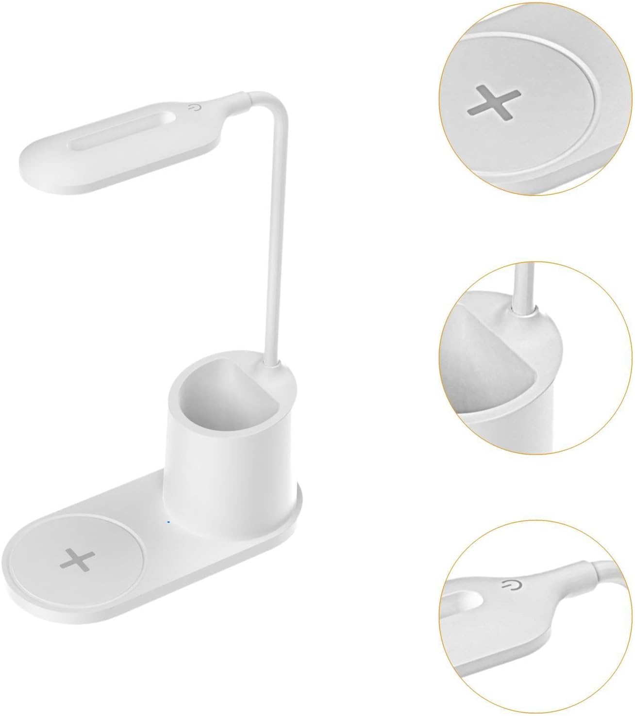- 3. La lámpara está diseñada con un soporte para bolígrafos, que se puede utilizar para almacenar lápices, llaves, tijeras, etc.