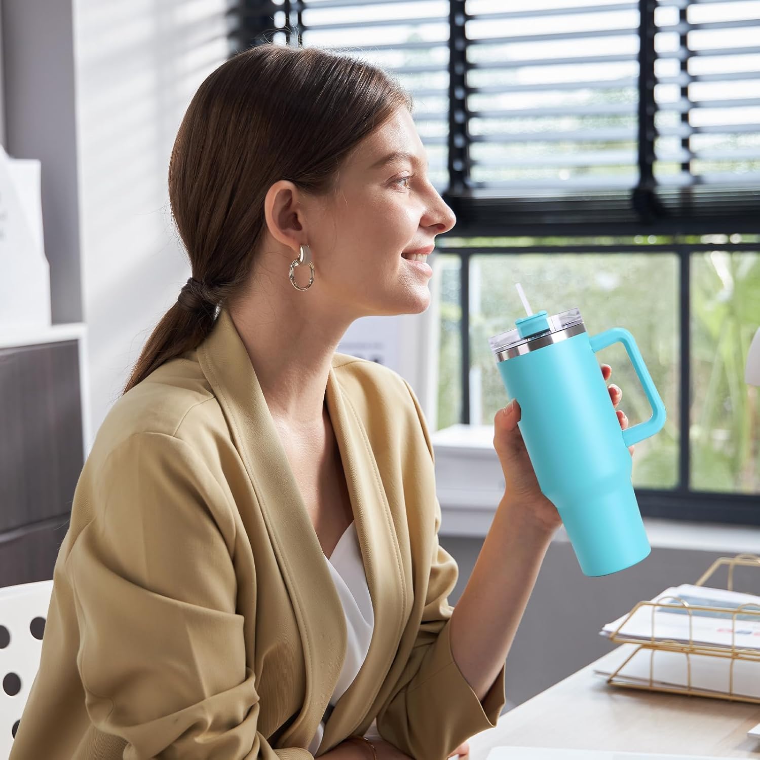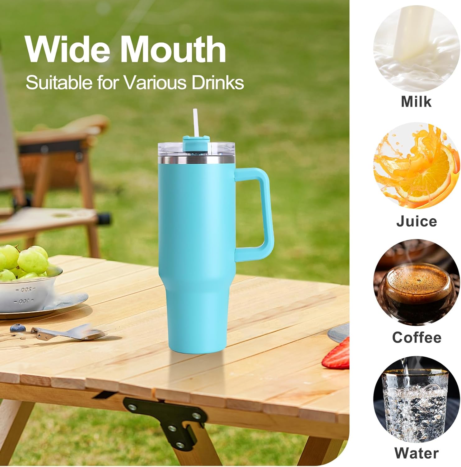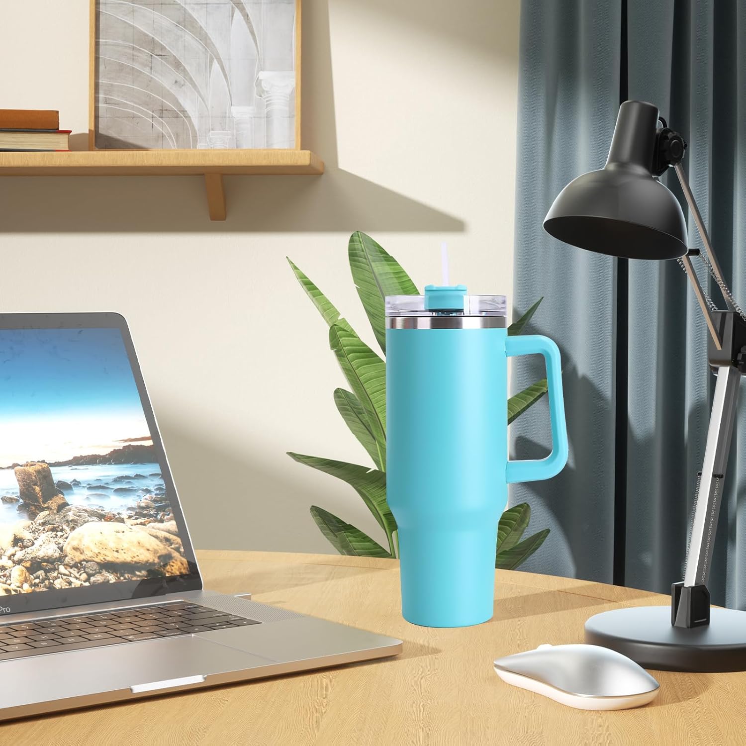 Aislado al vacío para bebidas calientes hasta 6+ horas y bebidas frías hasta 12 horas, la taza con pajita y asa es perfecta para café caliente, agua helada, cerveza, cócteles y más. Color de buen aspecto, forma simple y hermosa, adecuado para el trabajo y la escuela. La taza térmica a prueba de fugas se adapta fácilmente a su bolsa o portavasos de su vehículo.
